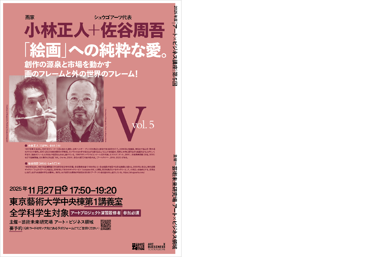 2025.11.27Projects2025年度|第5回| アート×ビジネス講座 小林正人氏+佐谷周吾氏『「絵画」への純粋な愛。創作の源泉と市場を動かす画のフレームと外の世界のフレーム!』開講